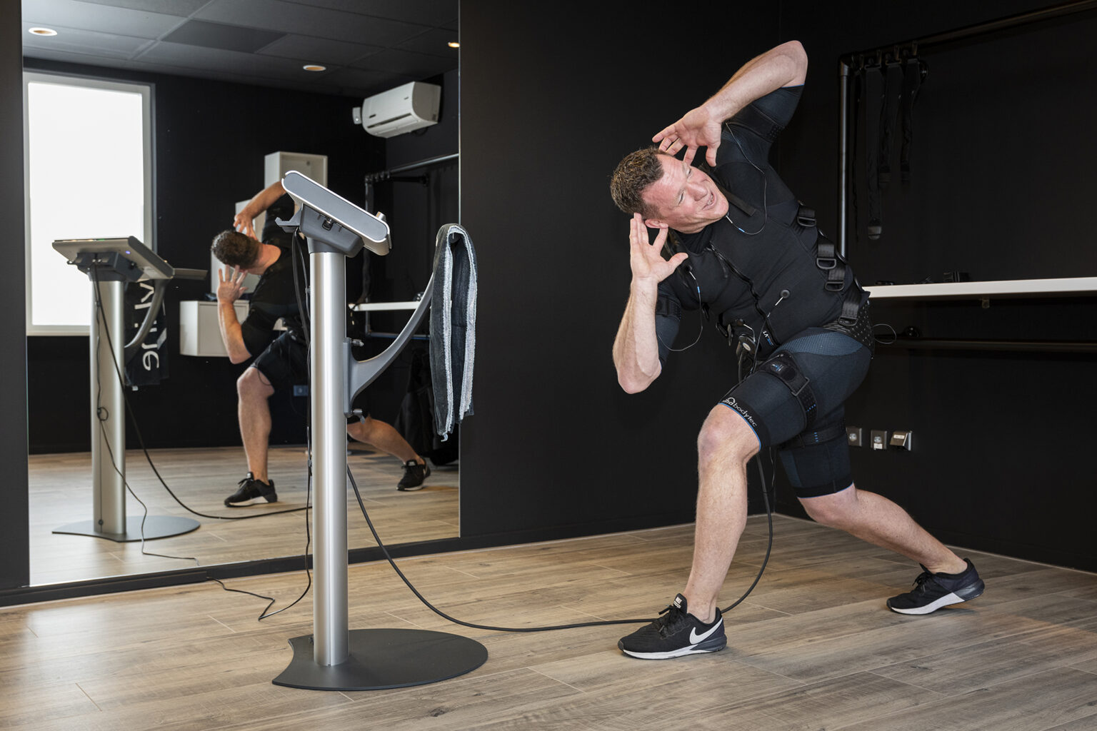 Miha Bodytec training bij Bodyline Zaltbommel. Fotografie voor online marketing om een goed beeld te geven van de voorbereiding en een Bodytec training.